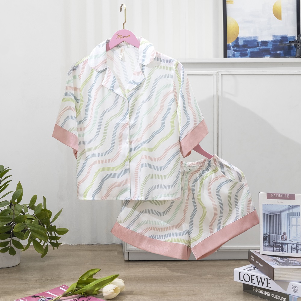 - Bộ đồ ngủ vải lụa màu hồng hoạ tiết độc đáo giúp Nàng luôn thoải mái.